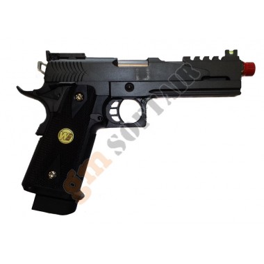 Hi-Capa 5.1 Marui. Funzionamento a GAS scarrellante. Carrello e corpo in ABS. Slitta picatinny sotto canna. Lunghezza 218 mm. Canna interna 110 mm. Peso 895 g. Caricatore da 28 bb.