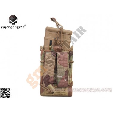 Porta caricatori TACO Double Decker Emerson. Innovativo sistema di ritenzione tramite elastico Open-Top. Ideale per caricatori M4/AK. Porta caricatore per pistola (9mm) anteriore. Sistema M.O.L.L.E. per aggancio su tattici e cinturoni. In nylon 1000 denari.