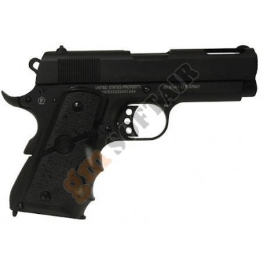 Hi-Capa 5.1 Gold Match Marui. Funzionamento a GAS scarrellante. Carrello e corpo in ABS. Slitta picatinny sotto canna. Lunghezza 222 mm. Canna interna 112 mm. Peso 850 g. Caricatore da 31 bb.