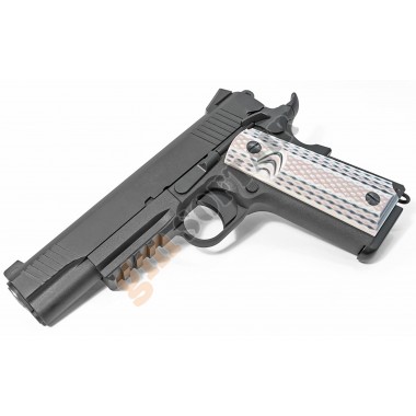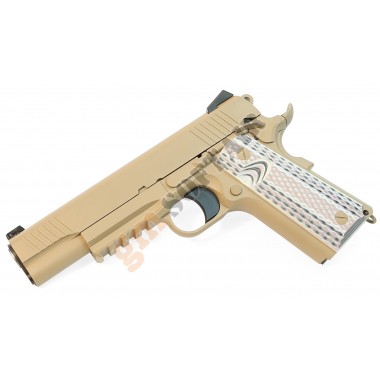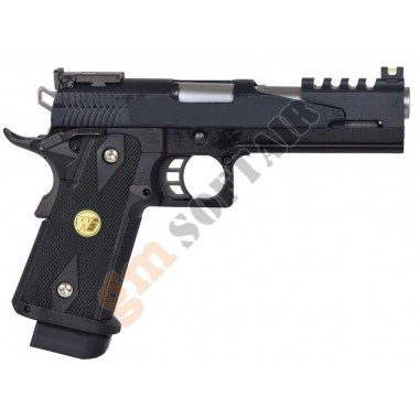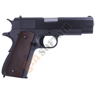 1911 Version 1943 WE. Funzionamento a GAS scarrellante. Completamente in metallo. Lunghezza 200mm. Peso 950g. Caricatore da 15+1bb. Hop up regolabile.