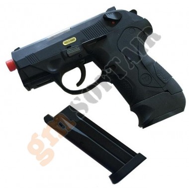 P08 W.E. Funzionamento a GAS scarrellante. Hop up regolabile. Completamente in metallo. Lunghezza 231 mm. Canna interna 100 mm. Peso 835 g. Caricatore da 15 bb.