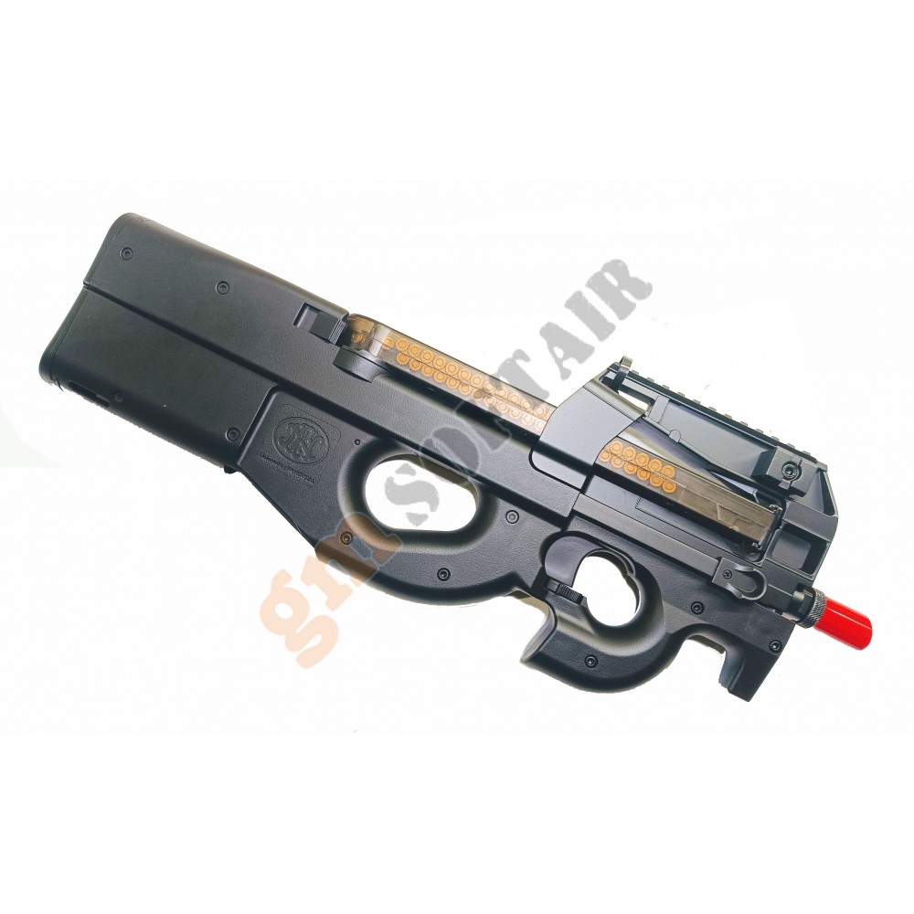 FN P90 Cybergun. Guscio in polimero con loghi FN Herstal. Slitta picatinny per aggancio ottiche/dot. Batteria e carica compresi nella confezione (non coperti da garanzia).