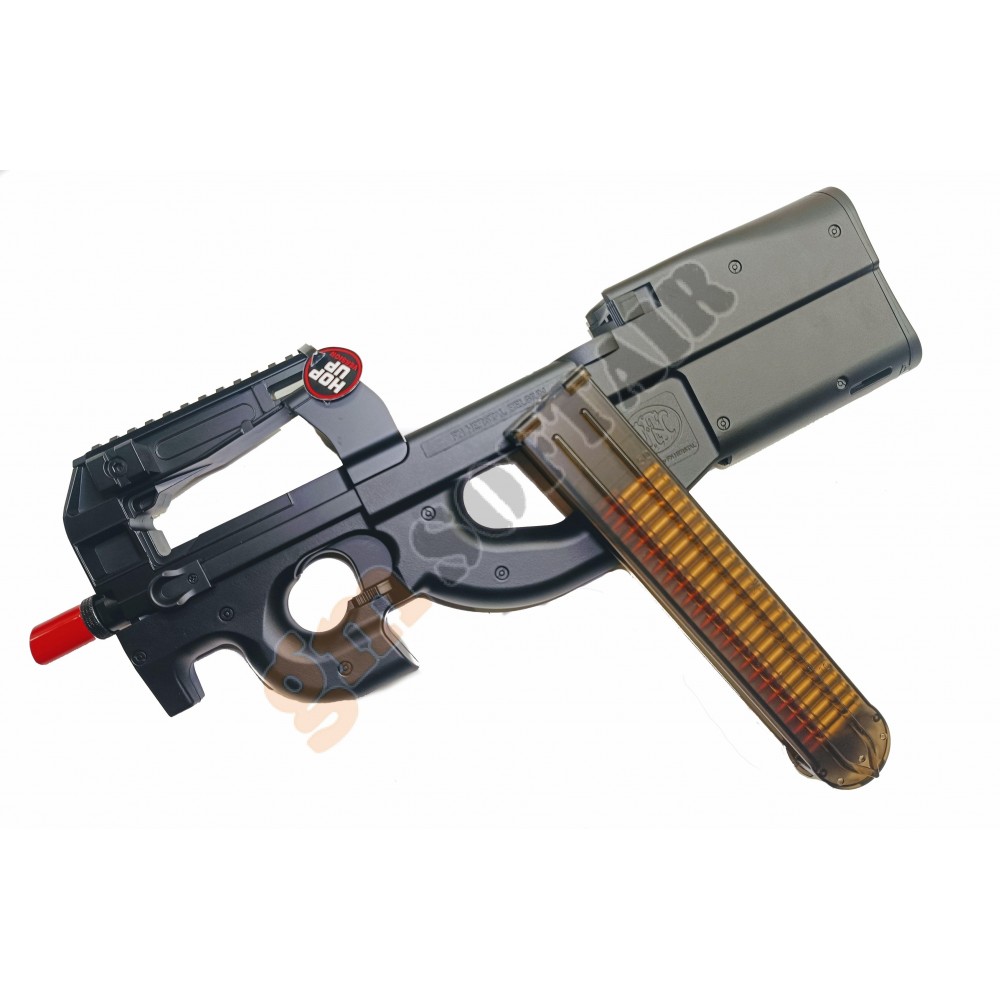 P90 Sportline Classic Army. Guscio in ABS. Sistema di smontaggio rapido del gruppo upper receiver. Red Dot integrato.Batteria e carica batteria opzionali.