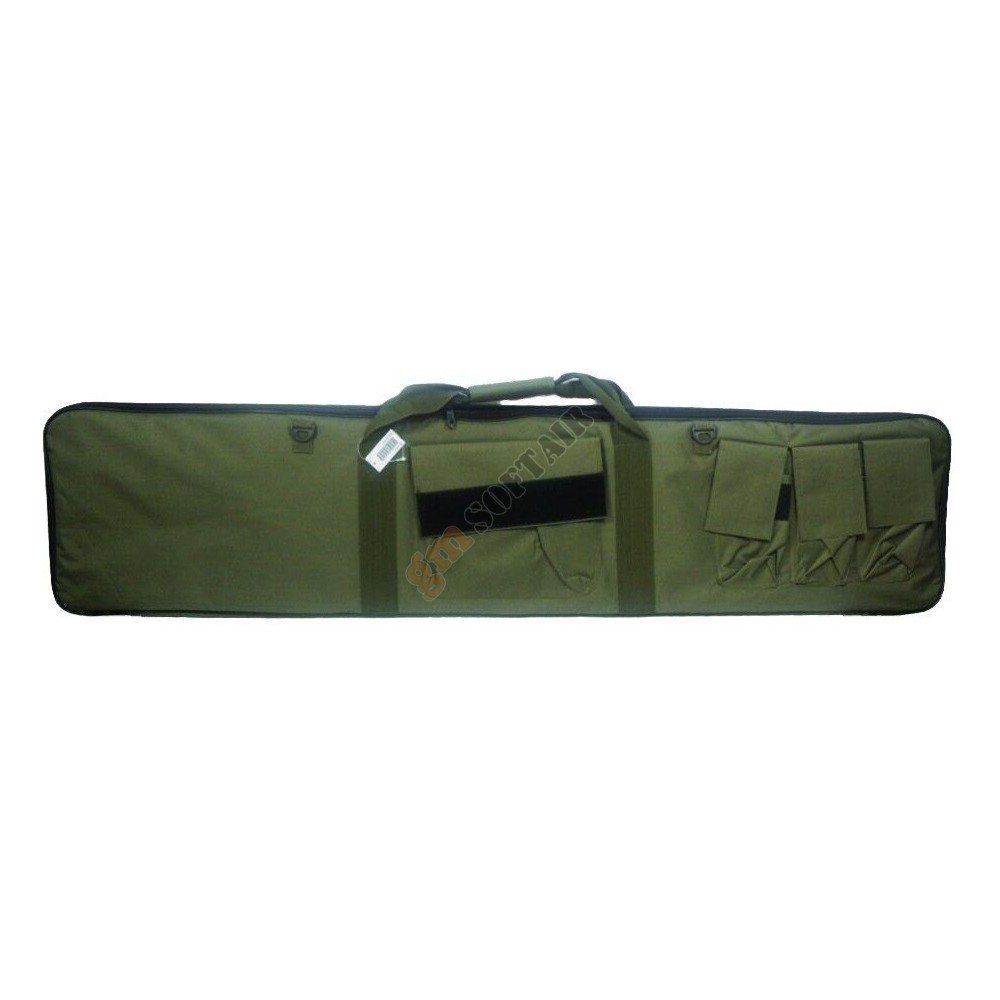 46” Protector Rifle Case Voodoo Tactical. In cordura, foderata internamente, con cuciture e ZIP rinforzate. Tracolla regolabile. Porta caricatori esterni. Dimensioni 116 x 7 x 30 cm.