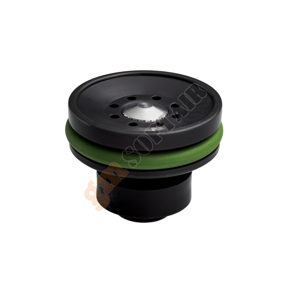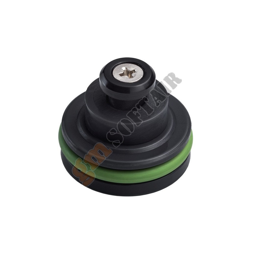 Testa pistone in tecnopolimero caricato con fibra di carbonio, concepita per le raffiche veloci e per aumentare la silenziosità della replica grazie alla ridottissima superficie battente