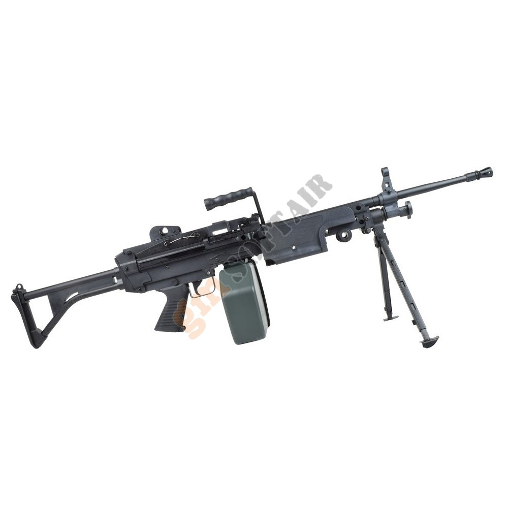 LMG Elettrica Versione 2020 Ares. Full metal. Calcio rimovibile ed estensibile in 6 posizioni. Grip inclusa. Tacca di mira posteriore flip up. Sicura e full auto (no colpo singolo). Hop up regolabile. Sistema rapido di sgancio canna.Batteria e carica batteria opzionali.
