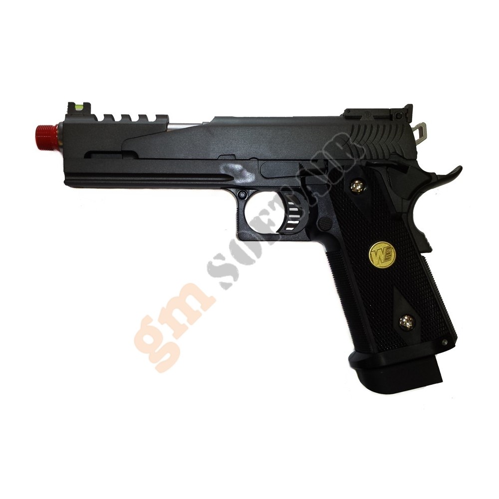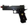 Hi-Capa 5.1 Swiss Arms. Funzionamento a GAS scarrellante. Carrello in metallo. Compatibile con ricambi Marui. Lunghezza 222mm. Canna interna 112.5mm. Peso 1025g. Caricatore da 31+1bb. Verniciata in rosso come in foto.