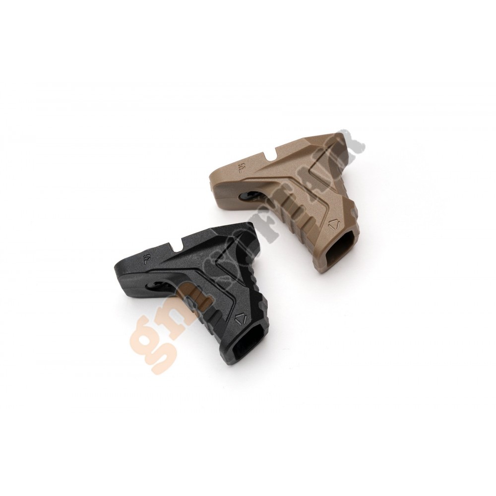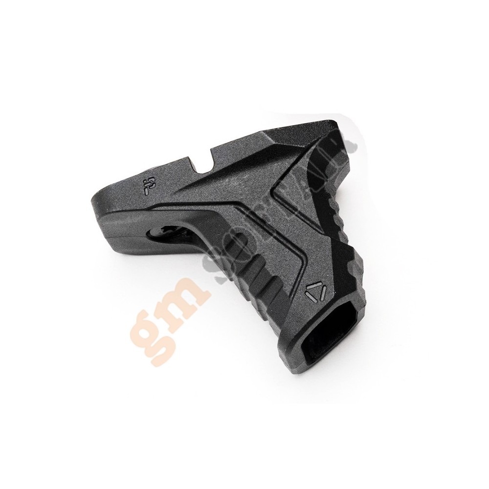 con vano per cavi in ​​eccesso (brevetto in corso) - Attacco a fessura M-LOK singolo con lunghezza complessiva di 1,70" (43,18 mm) - I cavi possono essere instradati: lateralmente, trasversalmente, a 90 gradi, a U o a Z - Angolo posteriore per opzioni di presa in stile trazione per un migliore controllo della manipolazione dell'arma - Aree delle dita anteriori e posteriori testurizzate per una presa migliore - Fermo di sicurezza anteriore e posteriore integrato Leggero - Materiale SI Polymer Extreme personalizzato e resistente agli urti