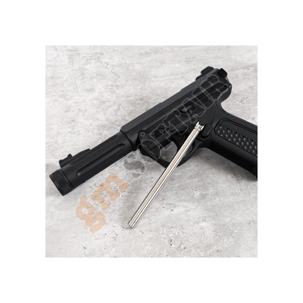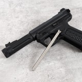 AAP-01 Assassin Action Army. Funzionamento BlowBack a GAS. Modalità di tiro semi / full auto. Gruppo aria anti-gelo. Gommino hop-up e canna VSR compatibile; regolazione rapida. Carrello e fusto in polimero rinforzato con fibra di nylon. Fibre ottiche. Caricatore compatibile G17 (Marui/WE). Possibilità di utilizzare caricatore WE a CO2 (Glock). Completamente riconfigurabile ambidestra.
