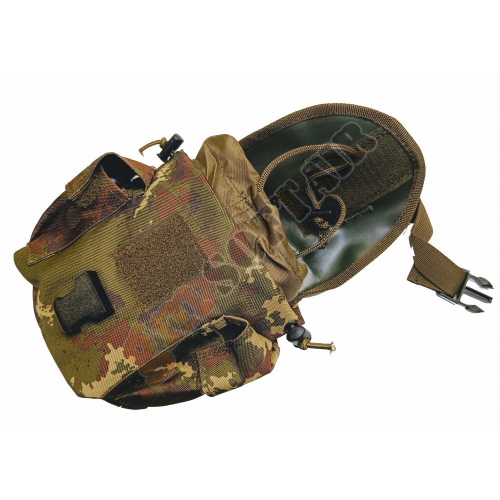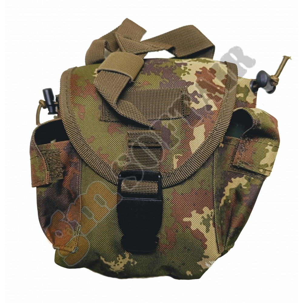 In nylon con sistema M.O.L.L.E. per aggancio su tattici e cinturoni.