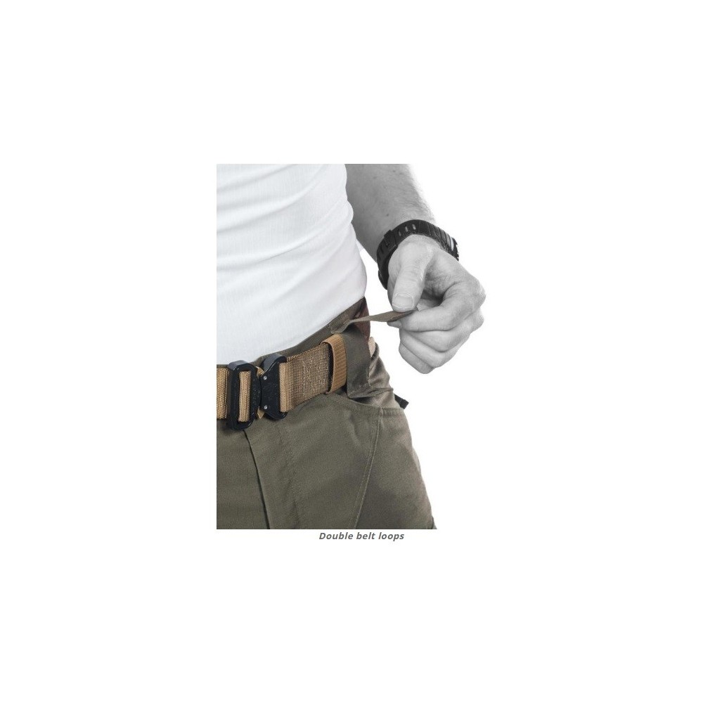 La vita è dotata di passanti per cinture/cinturoni e la caviglia ha un comodo gancio per gli scarponi per evitare che il pantalone si sollevi.