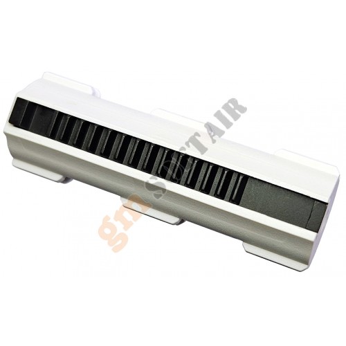 La cremagliera rinforzata si presenta con il secondo dente mancante e con il terzo già abbassato di 3 decimi di millimetro, in quanto questa configurazione predispone il pistone stesso per un corretto angolo di ingaggio (AOE) e lo rende indicato per l'alta velocità di raffica.