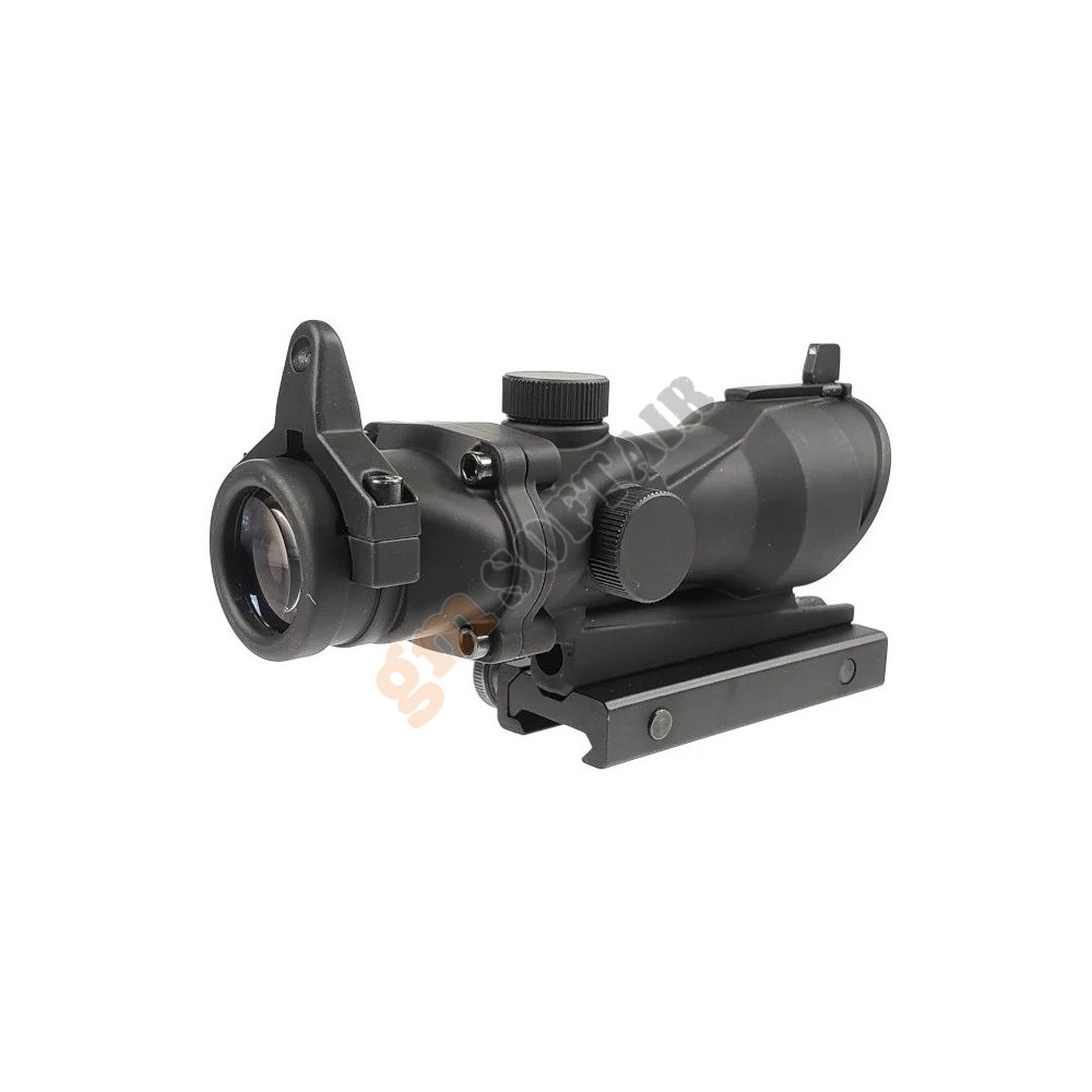 Ottica JS-Tactical. In alluminio, con alzo e deriva regolabili. Ingrandimento fisso 4x. Diametro lente 32 mm. Diametro tubo 25 mm. Compresa di anelli weaver.