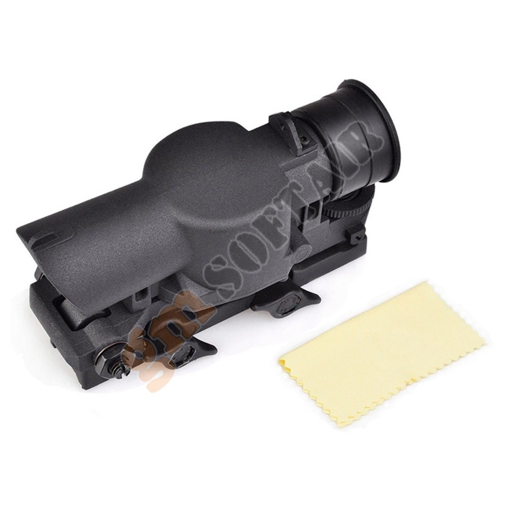 ECO MOD3 4X34 Scope Red & Blue Ill Nera NcStar. Corpo in alluminio anodizzato. Possibilità di installare le tacche di mira su 3 posizioni differenti. Aggancio rapido QD. Necessita di 1 batteria CR123A (non inclusa).