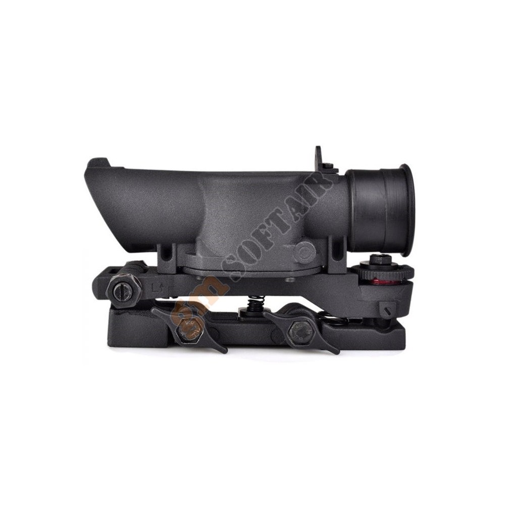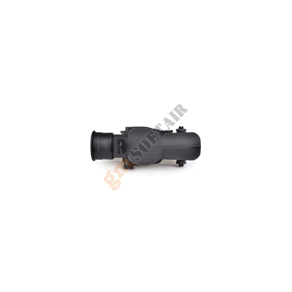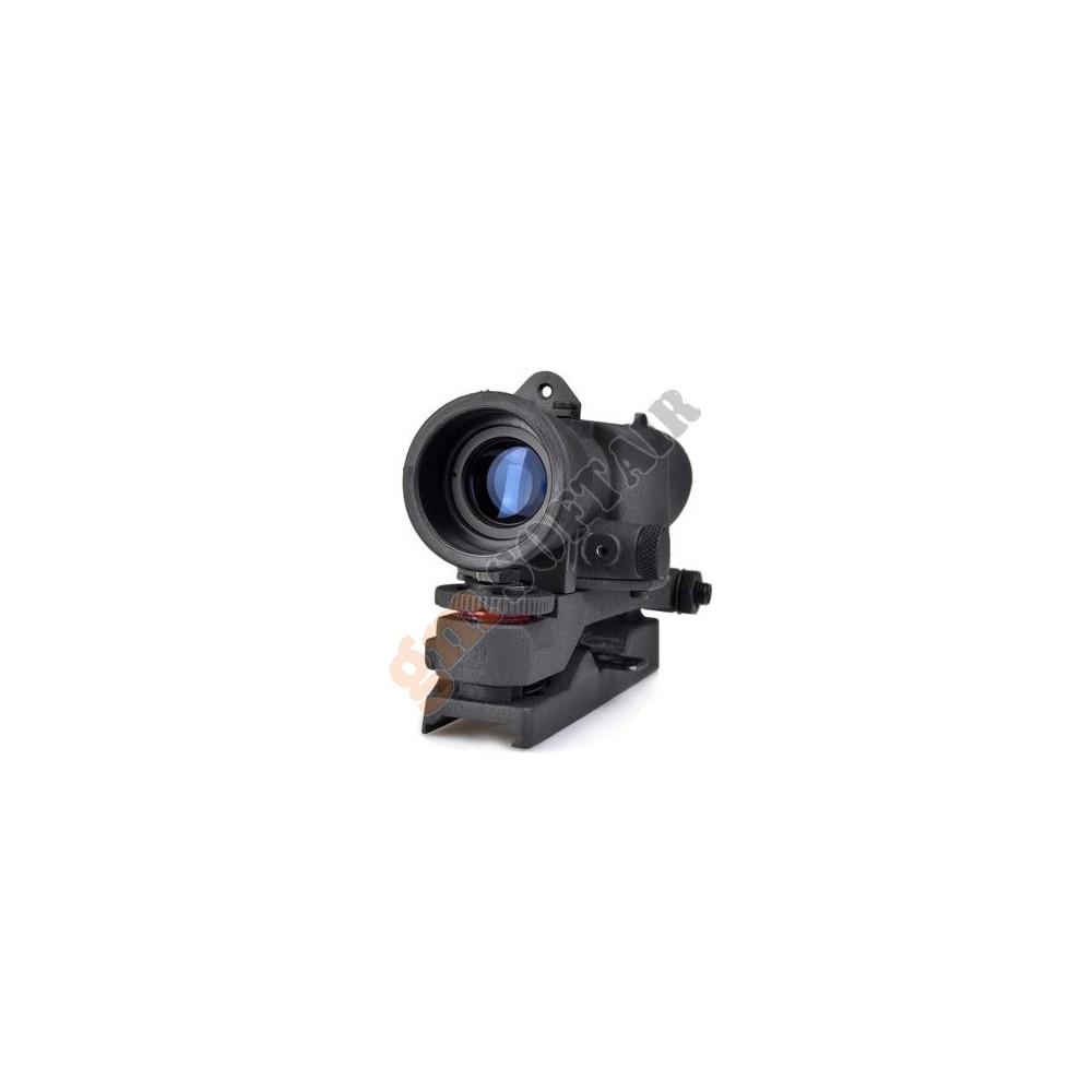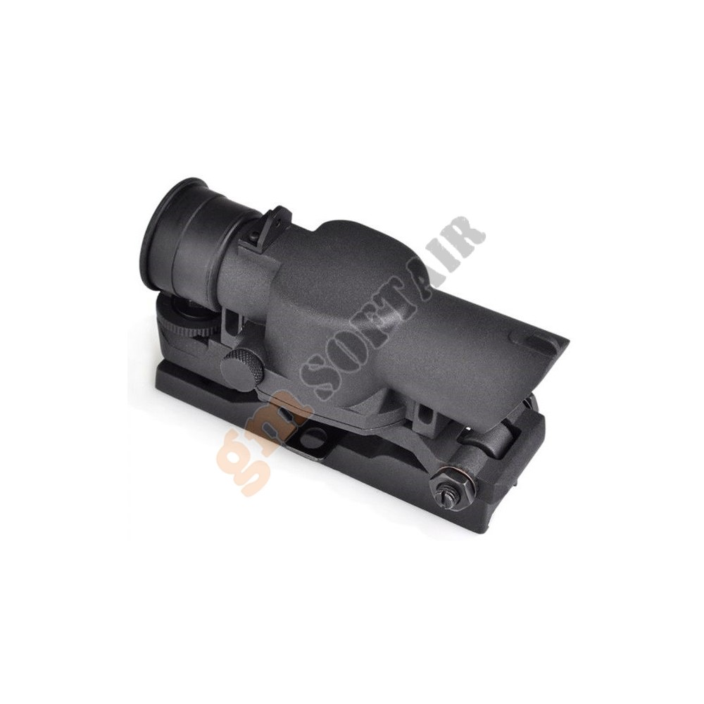 Ottica JS-Tactical. In alluminio, con alzo e deriva regolabili. Ingrandimento fisso 4x. Diametro lente 32 mm. Diametro tubo 25 mm. Compresa di anelli weaver.