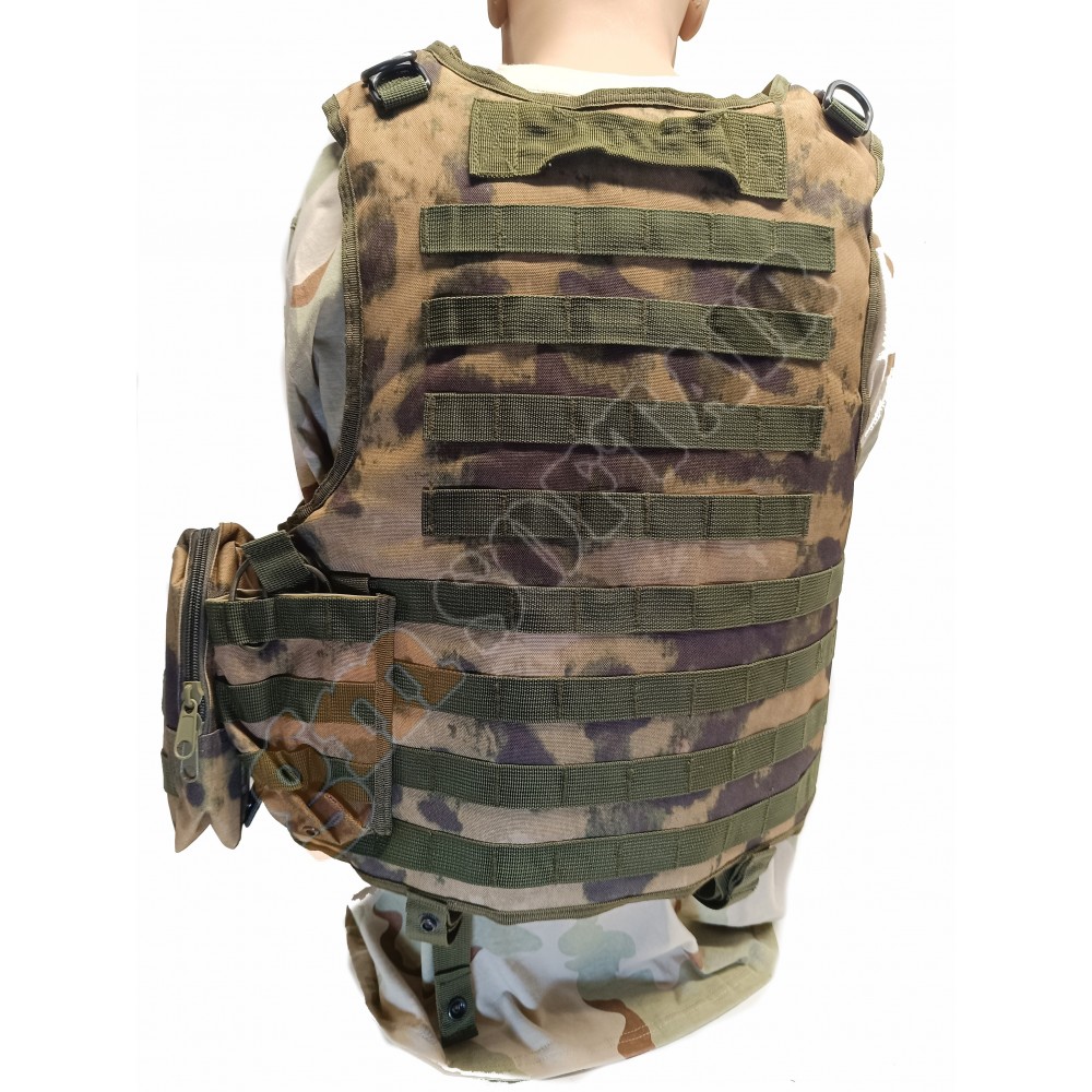 In nylon con sistema M.O.L.L.E. anteriore e posteriore per aggancio accessori.