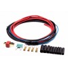 - Sui dispositivi sono presaldati 2 fili neri di alta qualità 1,5 qmm (AWG16) con isolamento MPPE, lunghezza 500 mm ciascuno. Il filo blu da 0,34 mm2 (AWG22) con una lunghezza di 1000 mm viene utilizzato per il collegamento in qualsiasi punto del cavo rosso.