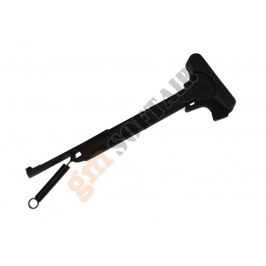 AKMS E&L Airsoft. Versione Platinum (vedi foto: gearbox, ingranaggi, guidamolla, gruppo aria ottimizzati). Guscio in metallo, calcio a stampella e paramano in vero legno. Vano batteria sopra la culatta (batteria AK style). Batteria e carica batteria esclusi.