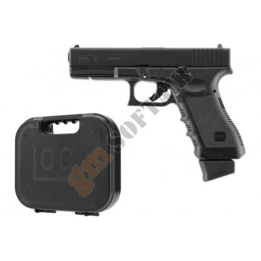Glock 17 Deluxe Umarex. Funzionamento blowback a CO2. Carrello in alluminio, con loghi originali Glock. Fusto in polimero. Hop Up regolabile. Lunghezza 204 mm. Peso 674 g. Caricatore 24 bb. Compresa valigetta Glock.