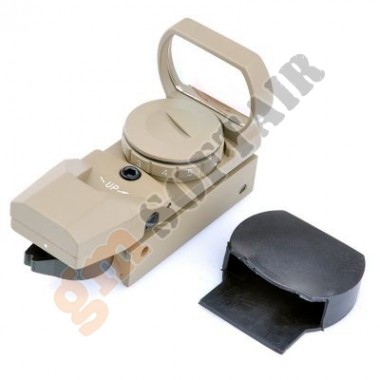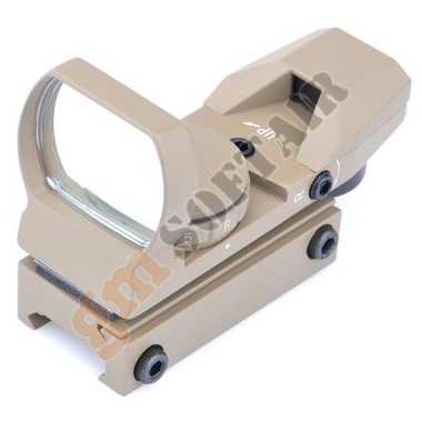 Multi Reticle Red-Green Dot AIM-O. Realizzato in alluminio. Sistemo di aggancio per slitte Picatinny. Reticolo illuminato rosso/verde, ad intensità variabile. 4 tipi di reticoli selezionabili. Alzo e deriva regolabili. Diametro obiettivo: 22mm × 33mm. Dimensioni: 82mm x 55mm x 38mm. Peso: 119gr. Funziona con 1 batteria CR2032, non incluse.