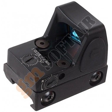 SPD Micro - Solar Reflex Sight NcStar. Aggancio RMR e include anche il supporto per l'attacco Picatinny. Funzionamento solare, ma può essere alimentato da 1 batteria CR2032 (non inclusa). Punto rosso, a più livelli di intensità. Alzo e deriva regolabili.