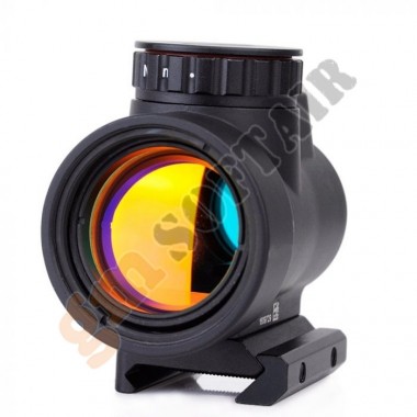 MRO Red Dot Sight 2.0 AIM-O. Realizzato in alluminio. Sistema di aggancio rapido per slitte Picatinny. Punto rosso a 6 intensità con ulteriore modalità notturna. Alzo e deriva regolabili. Funzionamento con una batterie CR2032. (non incluse). Include copertura in gomma. Include attacco rialzato a sgancio rapido.