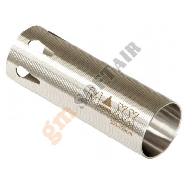Cilindro Maxx Model. CNC cilindro in acciaio inox temprato. Consigliato per canne da 300mm fino a 400mm. Per serie AEG fucili elettrici.Volume di compressione dell'aria: 23901 mm3. Lunghezza totale: 72,15 mm. Diametro esterno: 25,4 mm. Diametro interno: 23,85 mm. Peso 25,71 grammi. Compatibile con la maggior parte dei gearbox AEG softair standard.