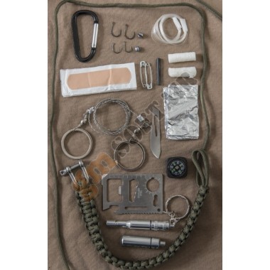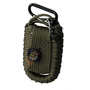 Paracord Survival Kit Large Mil-Tec. Lunghezza corda 12 m. Il kit contiene:moschettone esche fire starter set da pesca sega a filo cerotti spille bussola fischietto survival card piccola lama carta stagnola
