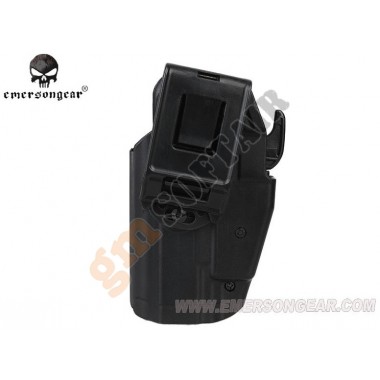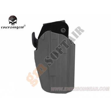 579 Grip Lock System Pro-Fit Holster by Emerson Gear. Con sicura a sgancio rapido. Aggancio per cinturoni con inclinazione regolabile. Materiale in fibra di Nylon. Modello universale, compatibile con:Glock G series Beretta M9 Series H&K Sig Sauer Colt 1911 series