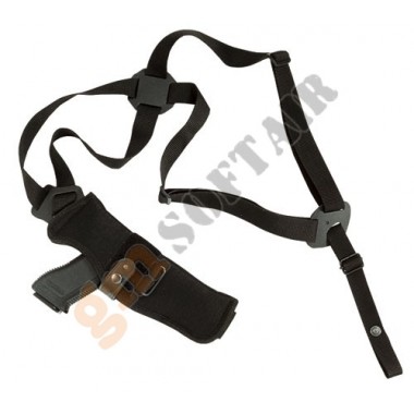 Fondina ascellare verticale ambidestra in cordura, sistema ascellare special con aggancio alla cintura, sgancio regolabile.