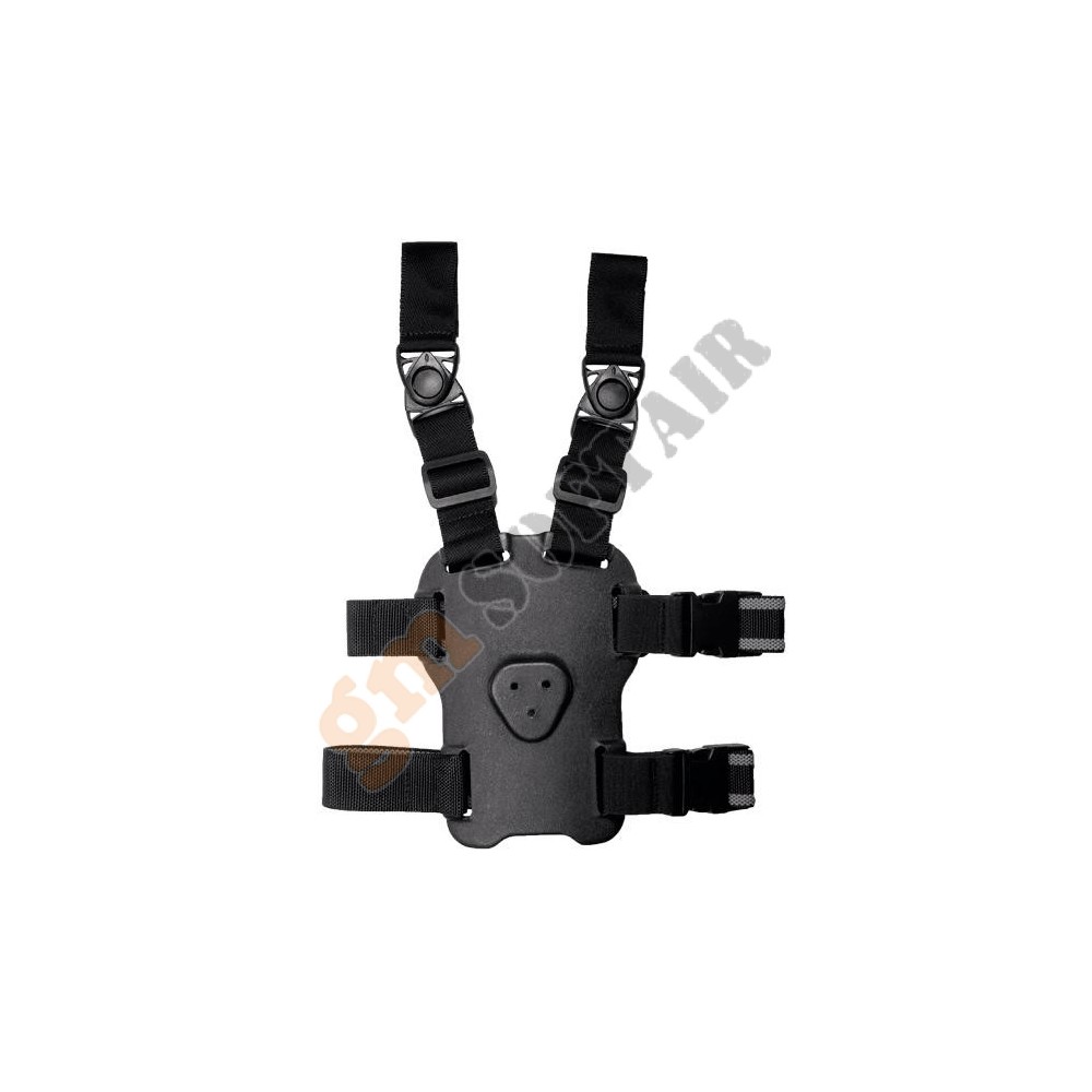 Tactical drop leg holster Voodoo Tactical.Uso cosciale.Universale per pistole automatiche M9/M1911/USP/Glock/Hi-Capa.Sistema di ritenzione a clip o velcro.Porta caricatore integrato.Dimensioni: 19x23cm.Testata per resistere alle peggiori condizioni ambientali (acqua, fango, sabbia).Completamente regolabile, in cordura.Versione destra.