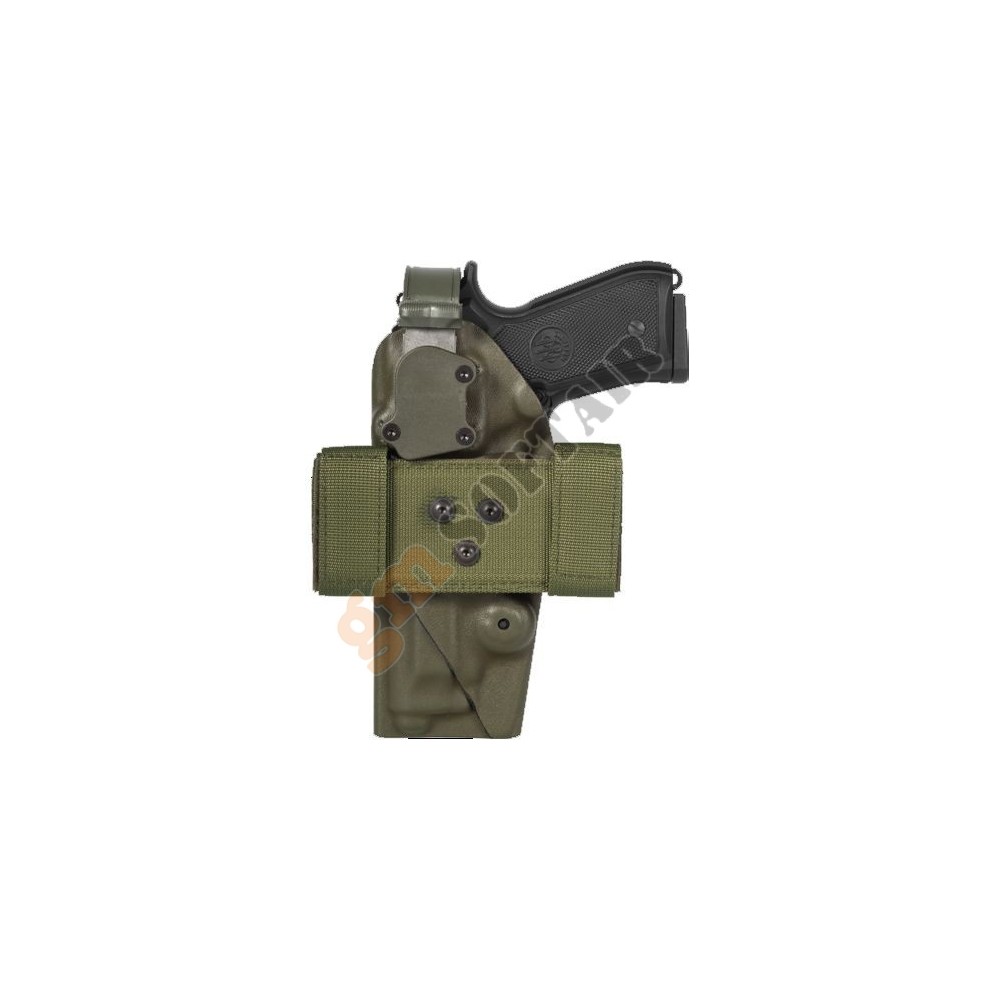 Fondina serie VKK8 Vega Holster.In polimero stampato in termo formatura.Sistema di ritenzione tramite doppia frizione sul ponticello con vite di regolazione.Sistema M.O.L.L.E. per aggancio su tattici, cinturoni e piattaforme cosciali.Per Beretta 92/98.Colore Verde.