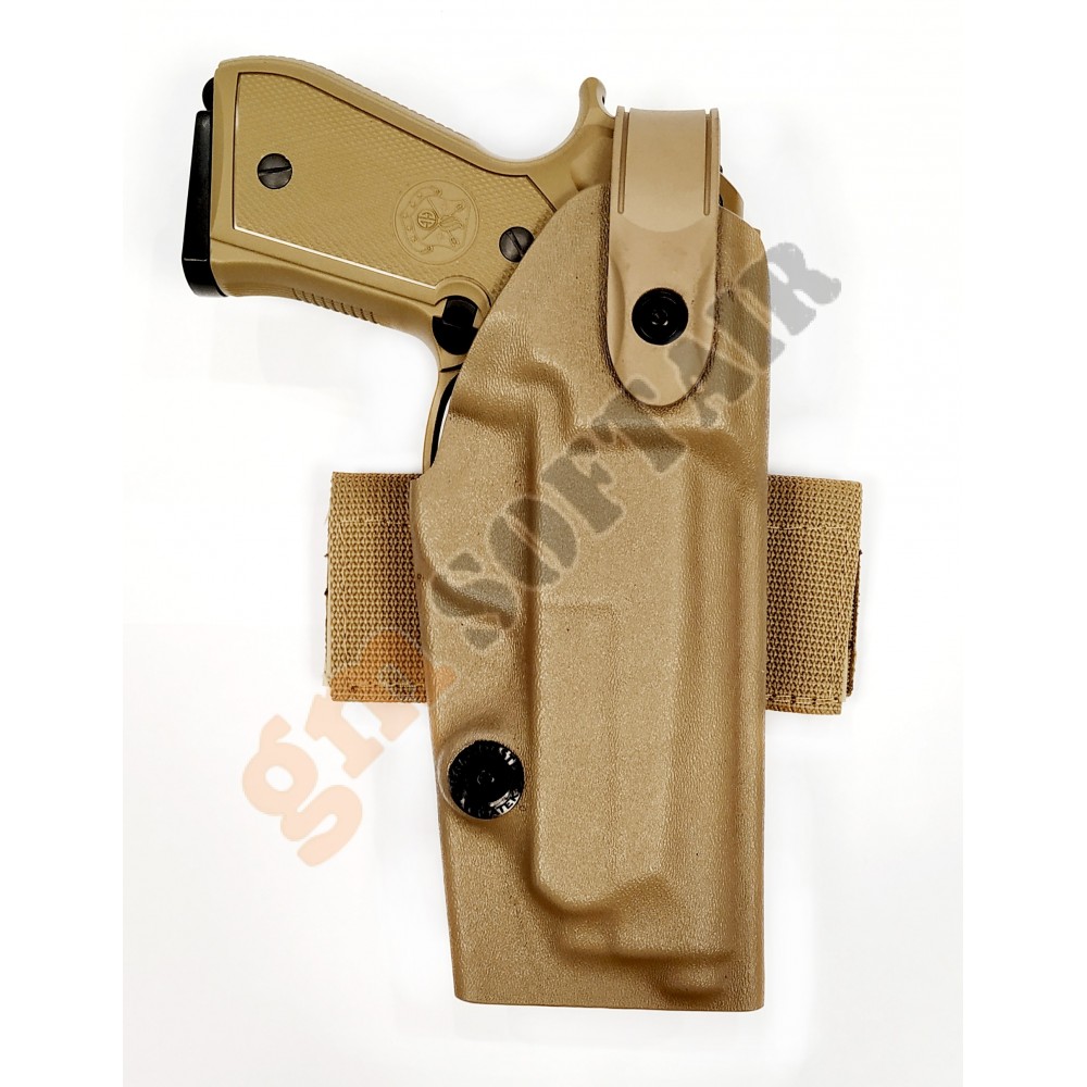 Fondina serie VKK8 Vega Holster. In polimero stampato in termo formatura. Sistema di ritenzione tramite doppia frizione sul ponticello con vite di regolazione. Sistema M.O.L.L.E. per aggancio su tattici, cinturoni e piattaforme cosciali. Per Beretta 92/98. Colore TAN.