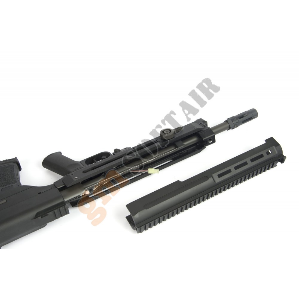 SL9 ARES. Scarrellante. Guscio in fibra. Slitta weaver superiore e inferiore. Selettore ambidestro. Modalità di sparo: sicura, colpo singolo, 2 colpi e full auto. Tacche di mira rimovibili.Alloggio batteria nel paramano. Batteria e carica batteria esclusi.