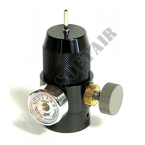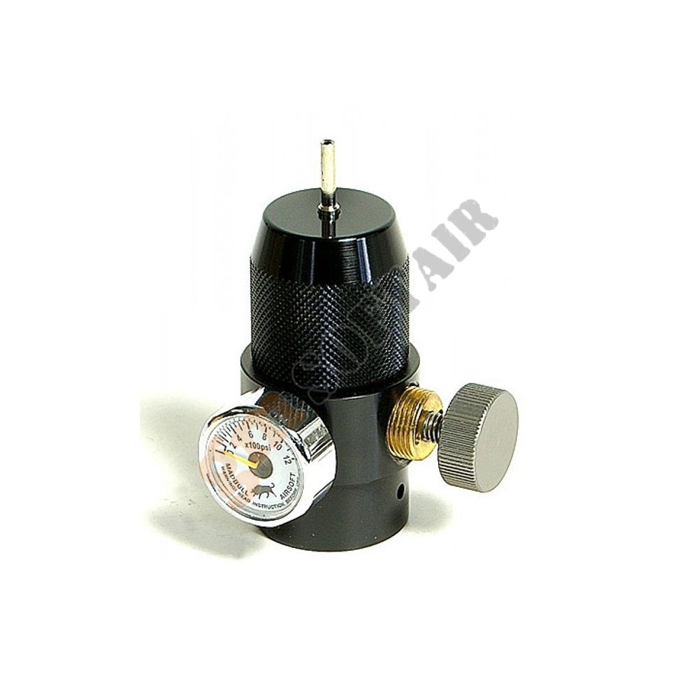 Adattatore CO2 Madbull. Permette di usare le fiale di CO2 da 12 g come fosse una bombola di Green Gas. Pressione regolabile.