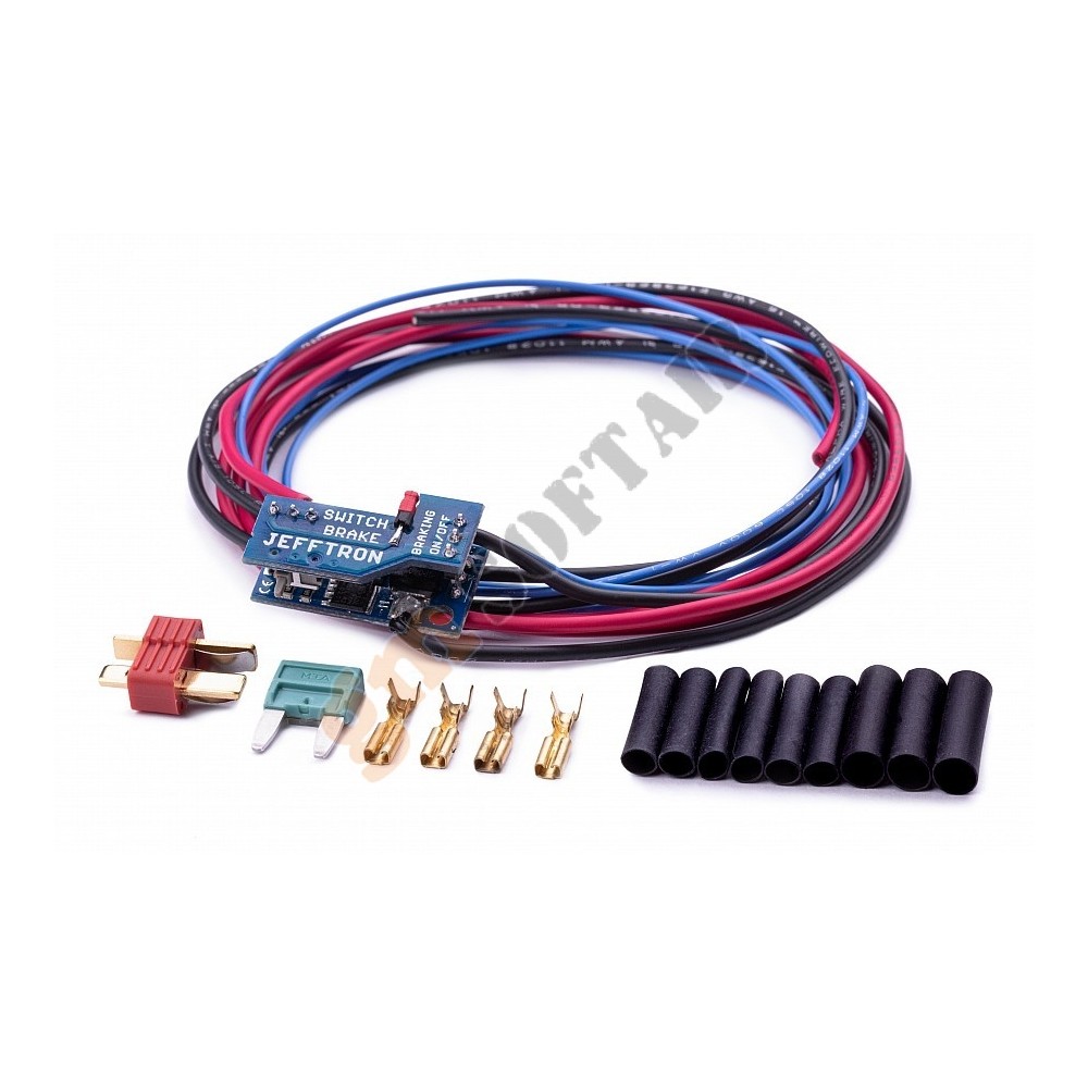 - Sui dispositivi sono pre-saldati 2 fili neri di alta qualità 1,5 qmm (AWG16) con isolamento MPPE sottile e duro, lunghezza 300 mm al motore e 700 mm alla batteria. Il filo blu 0,34 qmm (AWG24) con una lunghezza di 1000 mm viene utilizzato per il collegamento in qualsiasi punto del cavo rosso