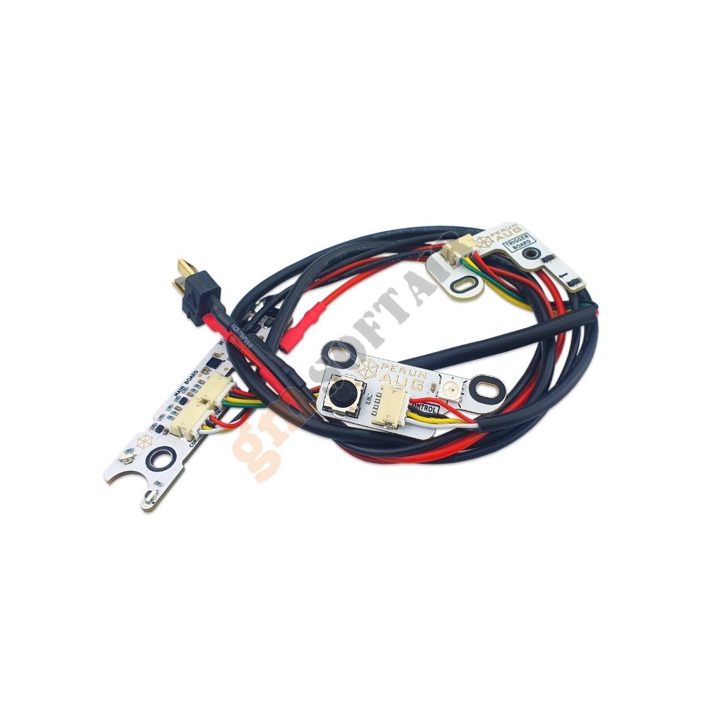 Perun per i contatti meccanici AUG nella tua replica AUG offre numerose utili funzionalità. I sensori magnetici, abbinati a un magnete installato direttamente sul grilletto, consentono di rimuovere la barra che collega il grilletto al gearbox, rendendo la trazione del grilletto molto più fluida. Il rilevamento ottico della posizione del settore dentato garantisce un funzionamento affidabile del fuoco singolo.