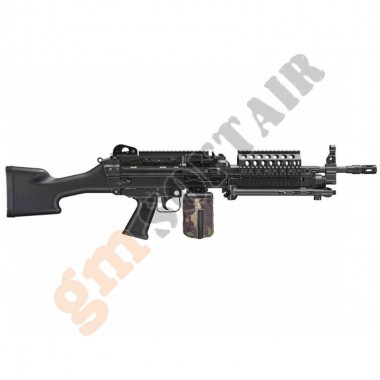 Minimi M249 Parà Cybergun. Loghi FN HERSTAL. Castello e corpo in polimero rinforzato. Canna esterna e maniglia in metallo. Calcio regolabile. Gear box e ingranaggi in metallo su boccole da 8mm. Lunghezza 790 / 980 mm. Peso 3750g. Caricatore maggiorato da 300bb. Gearbox V.2 in metallo QD. Guida molla QD sgancio rapido.Batteria e carica batteria esclusi.