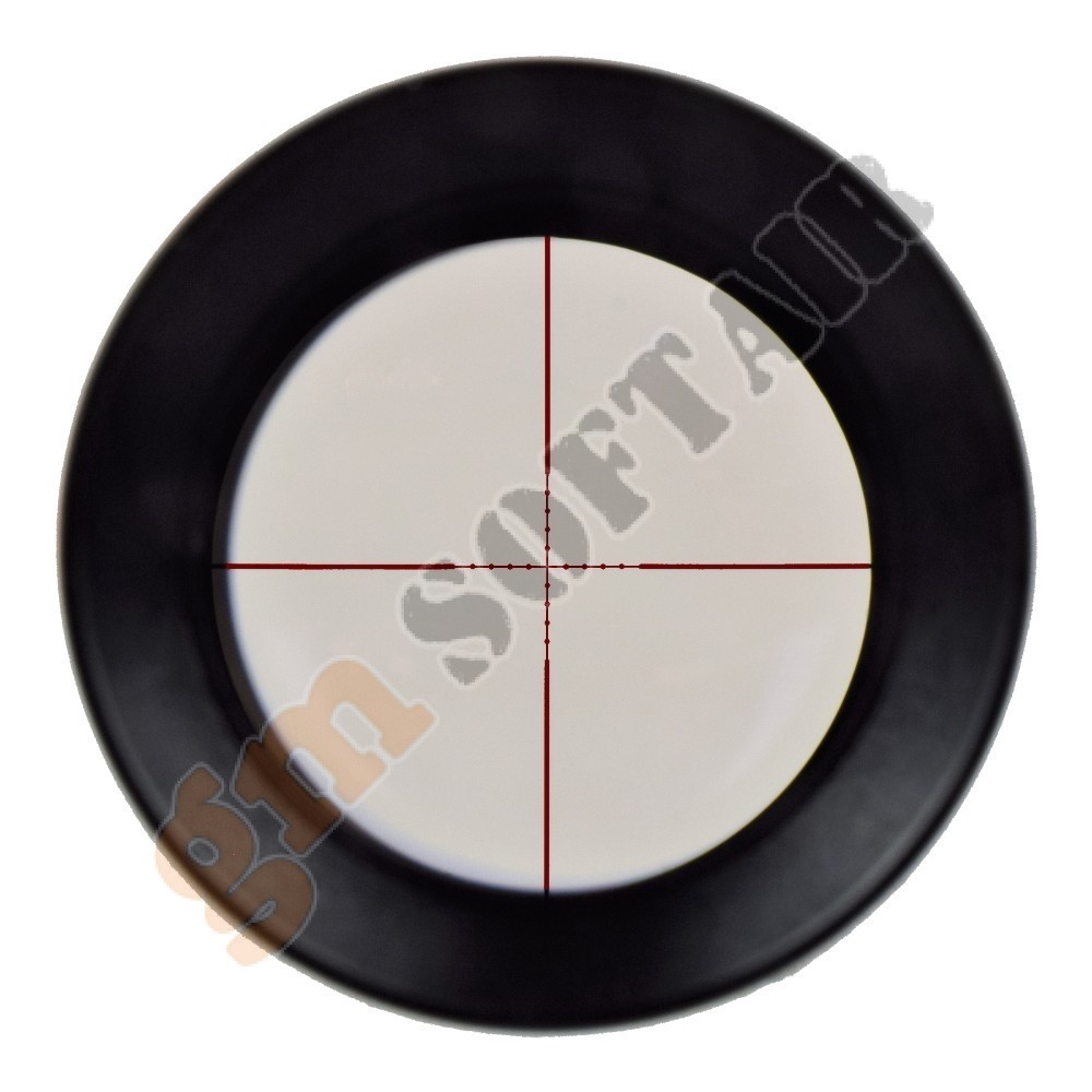Ottica JS-Tactical. In alluminio, con alzo e deriva regolabili. Ingrandimento fisso 4x. Diametro lente 32 mm. Diametro tubo 25 mm. Compresa di anelli weaver.