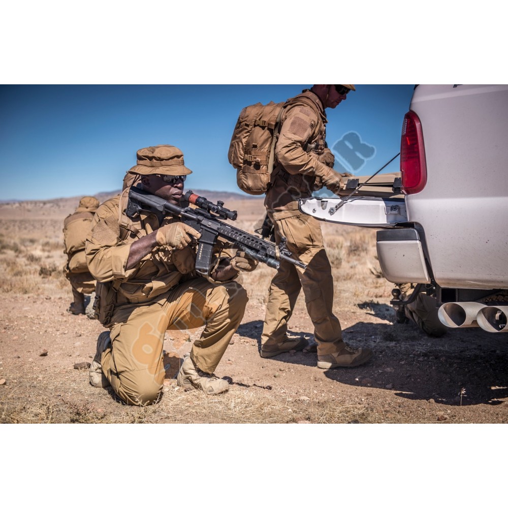 I pantaloni MBDU® fanno parte della nostra uniforme da campo avanzata Modern Battle Dress Uniform®. Questa uniforme è stata realizzata con tessuti di alta qualità, scelti con cura per fornire un'elevata durata e libertà di movimento, che è della massima importanza sul campo di battaglia. I pantaloni hanno un taglio ampio e profilato. La cintura è fissata con il nastro hook & loop che fornisce una regolazione aggiuntiva. I passanti larghi consentono l'utilizzo di una cintura fino a 45 mm di larghezza, anche con fondine o tasche per caricatori. I tasselli realizzati in tessuto elastico VersaStretch® sono posizionati nella zona posteriore e nel cavallo per una maggiore libertà di movimento. Le classiche tasche sui fianchi hanno rinforzi sui bordi per evitare di essere danneggiati dai fermagli dei coltelli. Tasche posteriori aggiuntive, con bordi rinforzati, si adattano a oggetti più grandi come il caricatore AR. Sulle cosce ci sono tasche cargo grandi, spaziose e abbottonate.
