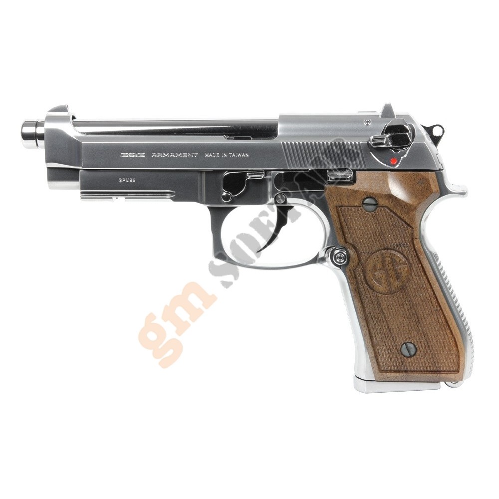 M92F Military Cromata Marui.Corpo in polimero.Funzionamento a GAS scarrellante.Lunghezza 217mm.Canna interna 125mm.Peso 740g.Caricatore da 26+1 bb.