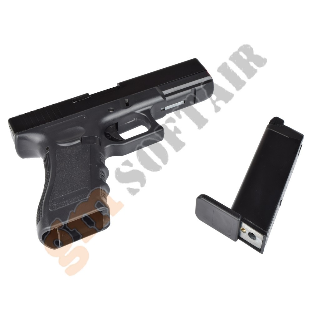 Glock G27 WE.Funzionamento a GAS scarrellante.Carrello in alluminio con fusto in polimero.Lunghezza 160mm.Peso 600g.Caricatore da 15+1 bb.