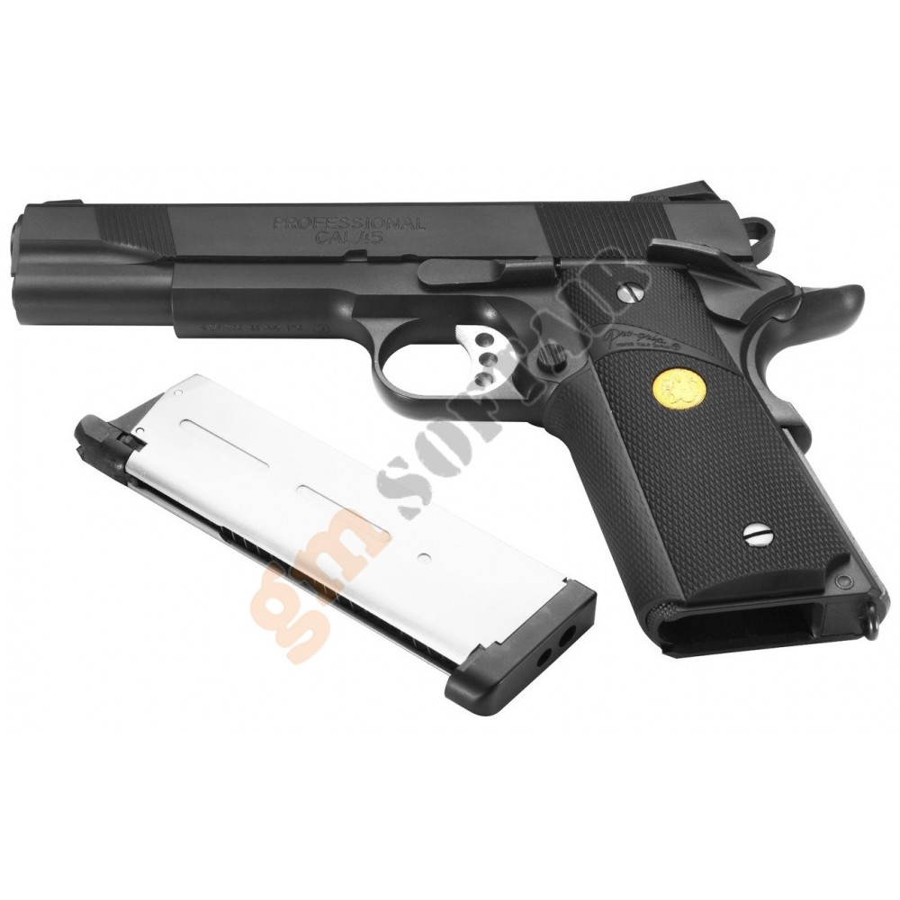 Colt M1911A1 Government Marui.Corpo in polimero.Loghi Colt.Funzionamento a GAS scarrellante.Lunghezza 218mm.Canna interna 128mm.Peso 800g.Caricatore da 26+1 bb.