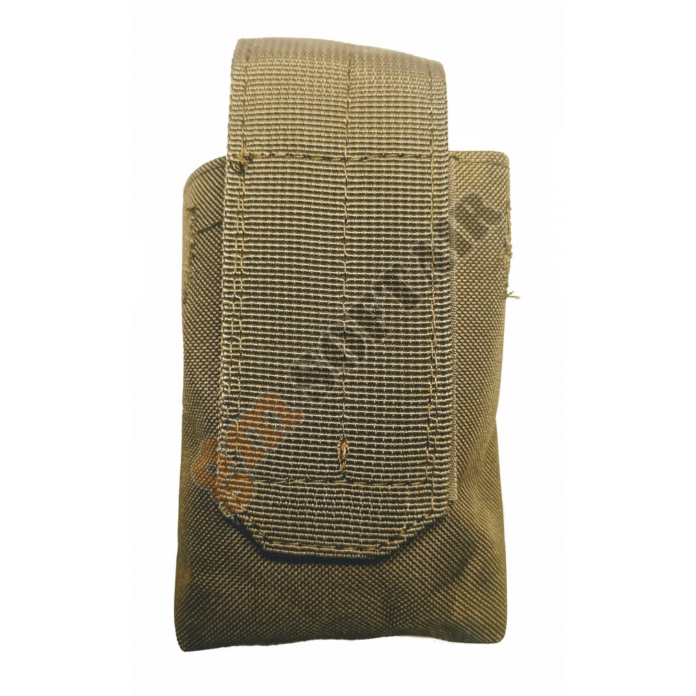 In nylon con sistema M.O.L.L.E. per aggancio su tattici e cinturoni.