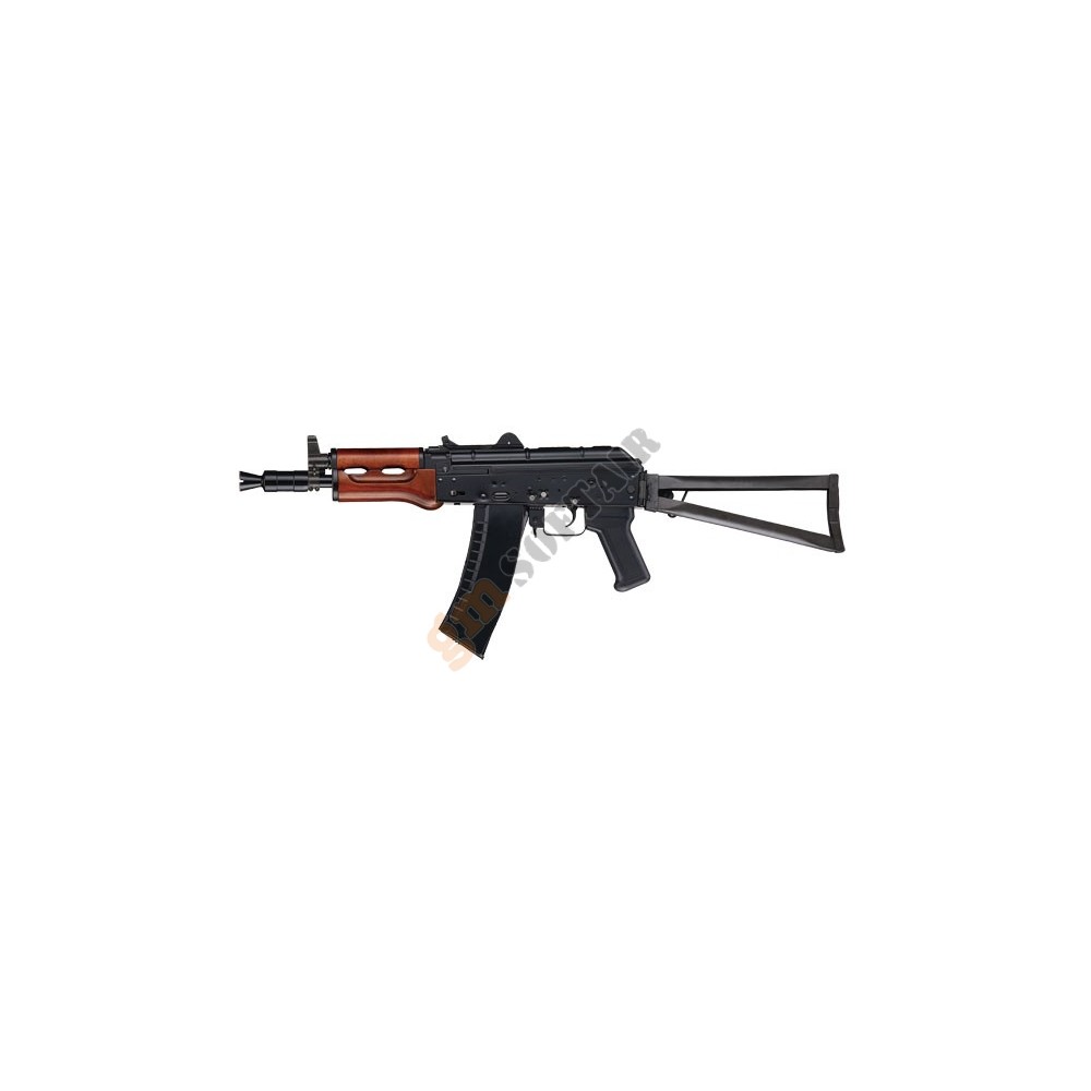 AKS74U CYMA. Guscio in metallo. Paramano in finto legno (ABS). Calcio a stampella in metallo.   Batteria e carica compresi nella confezione (non coperti da garanzia).