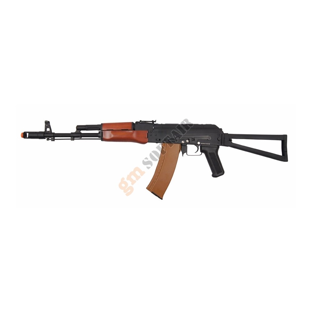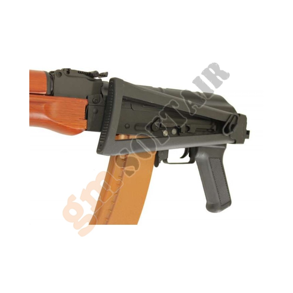 AKS74U CYMA. Guscio in metallo. Paramano in finto legno (ABS). Calcio a stampella in metallo.   Batteria e carica compresi nella confezione (non coperti da garanzia).