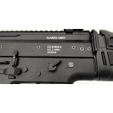 SCARAB Adv Battle Rifle (ABR) Classic Army. Guscio in alluminio lavorato al CNC. RIS KeyMod da 13". Bolt Catch funzionante. Gearbox con guida molla ad estrazione rapida. Tacche di mira Flip Up. Sistema mosfet. Possibilità di programmare (senza altri accessori) da raffica continua a raffica 3 / 5 colpi.Batteria e carica batteria opzionali.