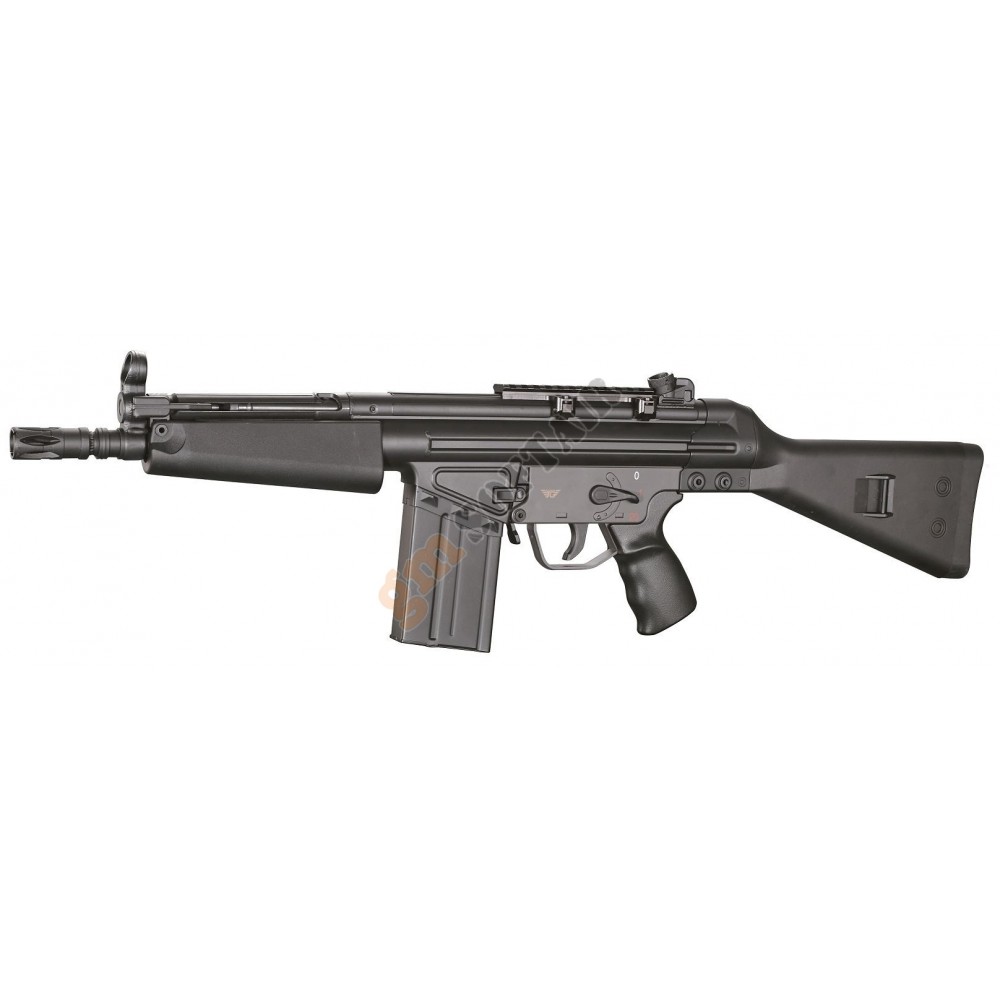 H&K MP5 A5 V2 TAC Umarex. Parte superiore del guscio in metallo, parte inferiore in polimero. Con loghi serigrafati. Modalità di tiro: colpo singolo, raffica controllata ( 3 colpi), raffica.Batteria e carica batteria esclusi.