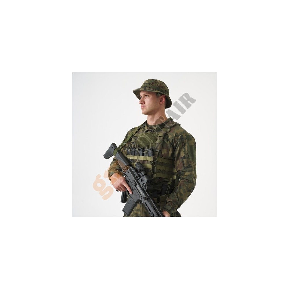 Il gilet Guardian Plate Carrier è una base per espandere la tua attrezzatura. Svolge due, a volte anche tre funzioni. Prima di tutto, è un plate carrier balistico. Le tasche sulla parte anteriore e posteriore sono progettate per trasportare piastre balistiche e il materiale elastico le rende facili da inserire ed estrarre. Grazie a loro, il soldato è meglio protetto da schegge, proiettili e altre ferite. In secondo luogo, il plate holder consente un facile accesso all'attrezzatura trasportata. Il gilet è compatibile con il sistema MOLLE/PALS, quindi è possibile collegarvi qualsiasi attrezzatura conforme a questo standard. Esistono numerosi accessori di questo tipo nella serie di prodotti Guardian. In terzo luogo, il plate holder, come elemento integrante dell'equipaggiamento militare, è disponibile anche in mimetiche popolari e frequentemente utilizzate per garantire una migliore mimetizzazione dell'utente durante l'esecuzione dei compiti.