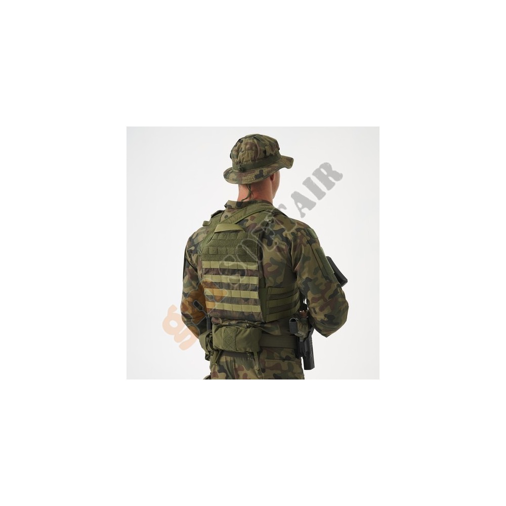 Il gilet Guardian Plate Carrier è una base per espandere la tua attrezzatura. Svolge due, a volte anche tre funzioni. Prima di tutto, è un plate carrier balistico. Le tasche sulla parte anteriore e posteriore sono progettate per trasportare piastre balistiche e il materiale elastico le rende facili da inserire ed estrarre. Grazie a loro, il soldato è meglio protetto da schegge, proiettili e altre ferite. In secondo luogo, il plate holder consente un facile accesso all'attrezzatura trasportata. Il gilet è compatibile con il sistema MOLLE/PALS, quindi è possibile collegarvi qualsiasi attrezzatura conforme a questo standard. Esistono numerosi accessori di questo tipo nella serie di prodotti Guardian. In terzo luogo, il plate holder, come elemento integrante dell'equipaggiamento militare, è disponibile anche in mimetiche popolari e frequentemente utilizzate per garantire una migliore mimetizzazione dell'utente durante l'esecuzione dei compiti.